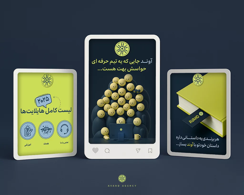 هر پروژهای در آژانس دیجیتال مارکتینگ آوند، نتیجهی ترکیب خلاقیت، استراتژی و تجربه است. ما فقط طراحی نمیکنیم، بلکه داستان برندها را با تصویر، رنگ و محتوا روایت میکنیم؛ رویکردی که در تمام خدمات آژانس دیجیتال مارکتینگ آوند جریان دارد و باعث میشود هر نمونهکار بازتابی از هویت و اهداف واقعی مشتری باشد. در این صفحه، بخشی از مسیرهایی را میبینی که با برندهای مختلف طی کردهایم؛ مسیرهایی که از ایده آغاز شدند و به هویت حرفهای و قابل اعتماد ختم شدند.